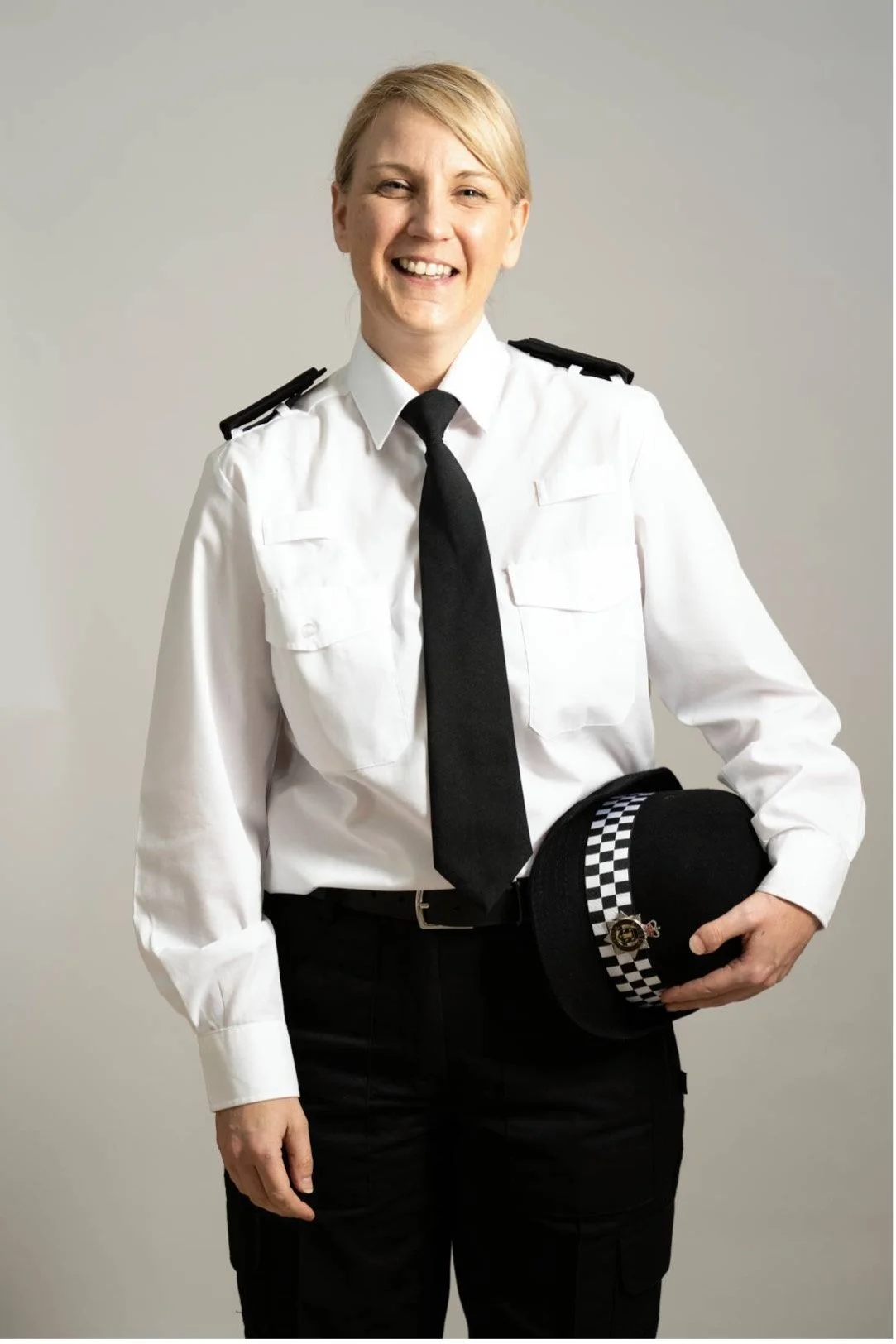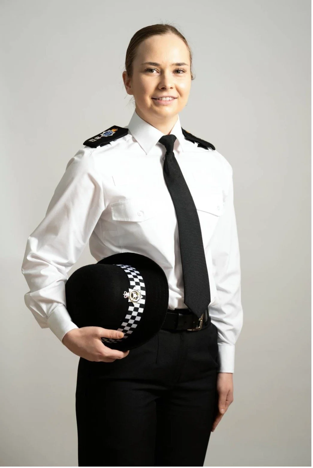 PC Olivia Crane in 2009 wearing a stab vest and white shirt that became standard uniform for women officers after 2002.