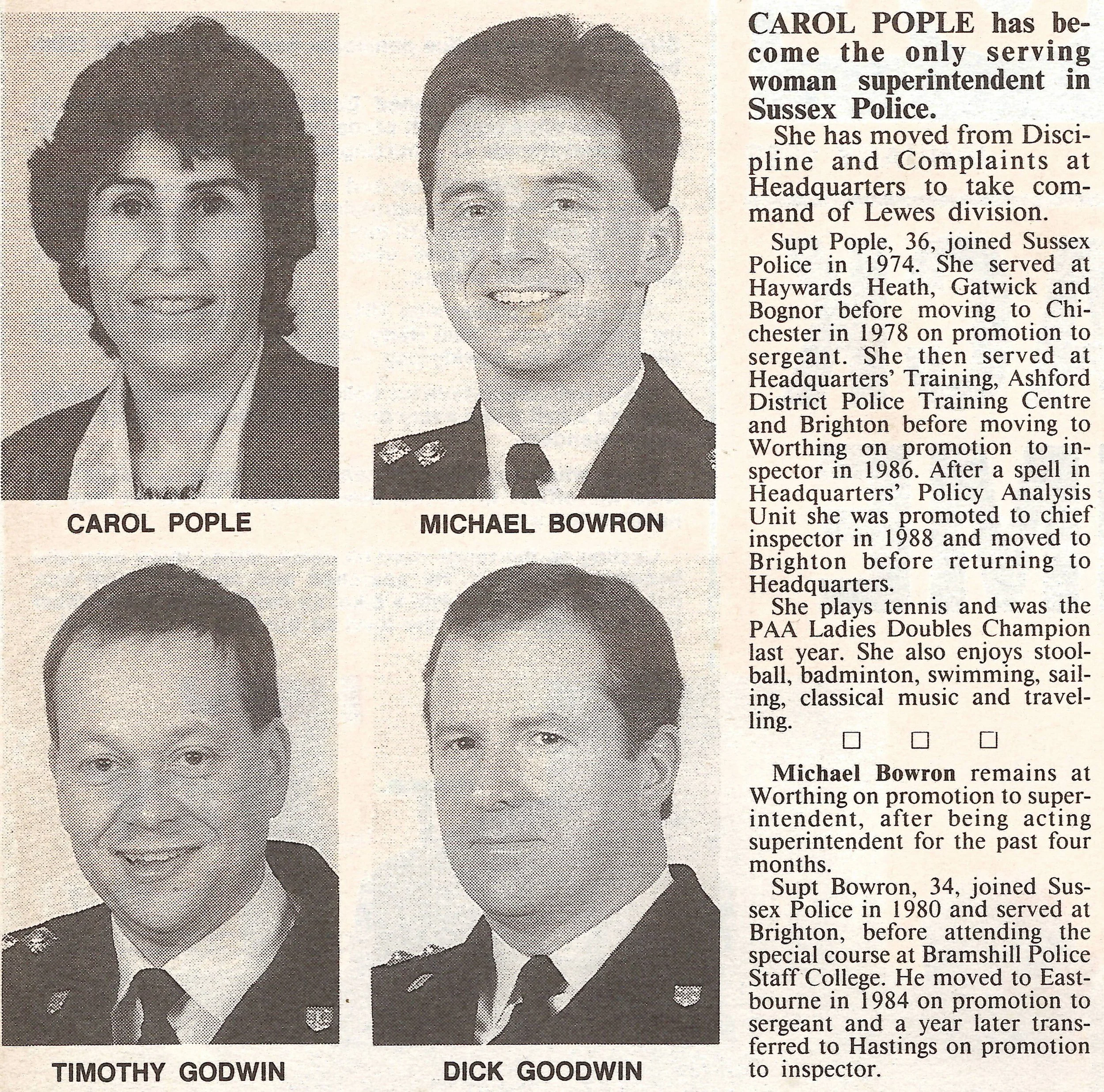 Carol Pople retired at the rank of chief Superintendent but she was the only woman to hold this rank in Sussex and at the time there was only one female superintendent.