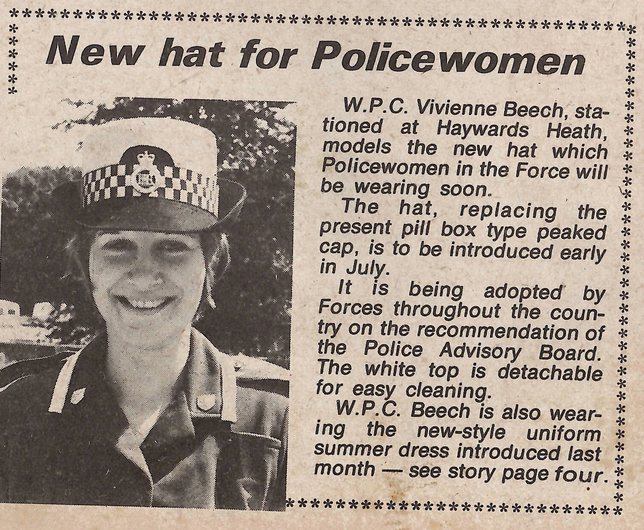 An article in Patrol newspaper (published by Sussex Police), December 1985.